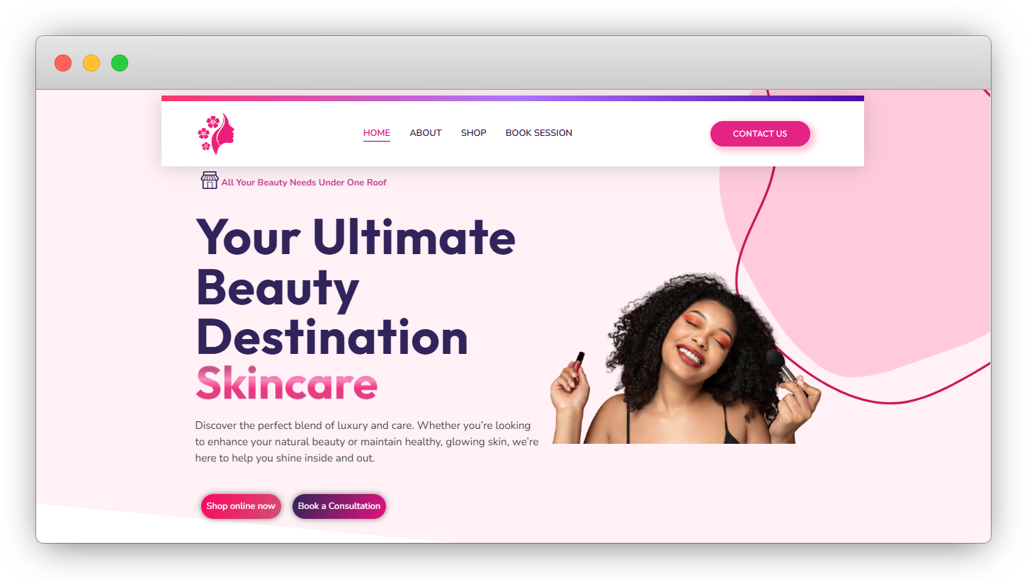 A visually stunning website created for a cosmetics company showcasing skincare and beauty products and reviews.