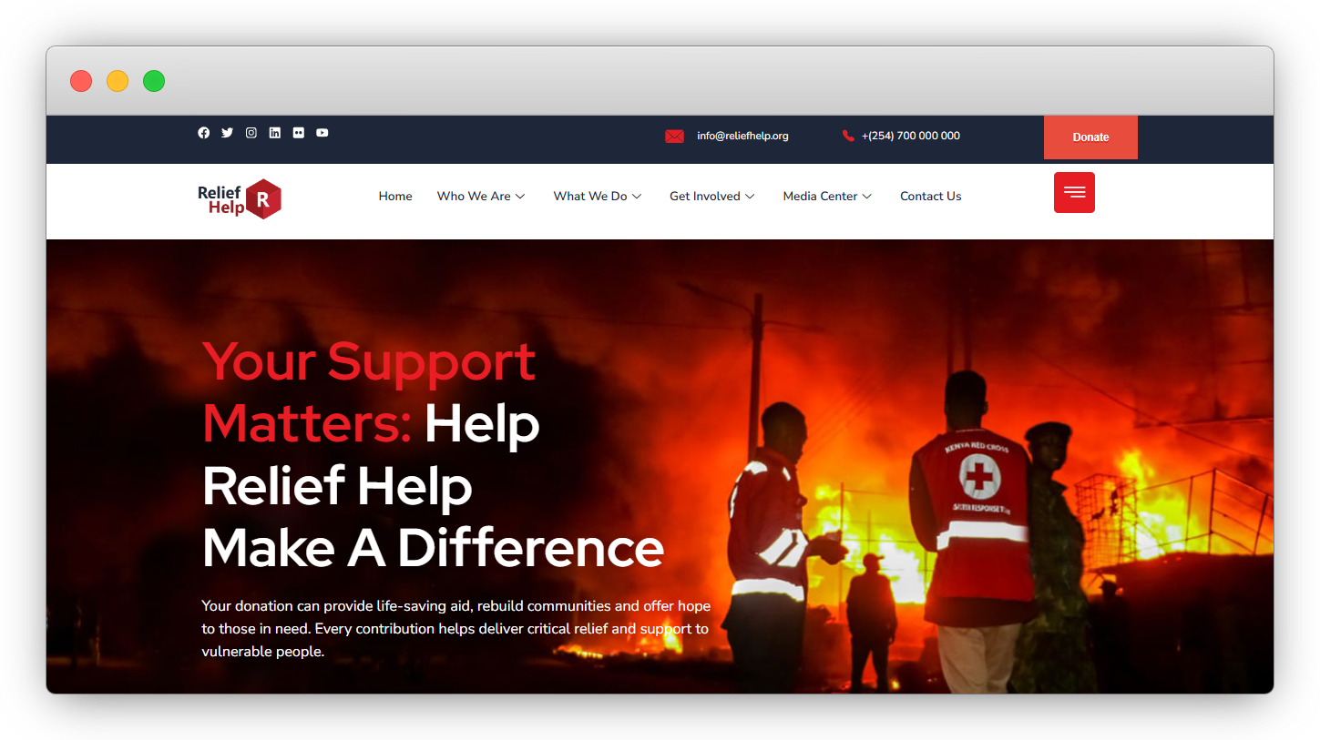 Theme duplication for Red Cross Kenya. As a Red Cross Volunteer this made it easy to manipulate the design of the theme used.