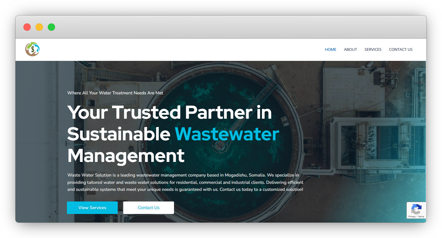 A professional website developed for a wastewater management company showcasing services, treatment solutions and products.